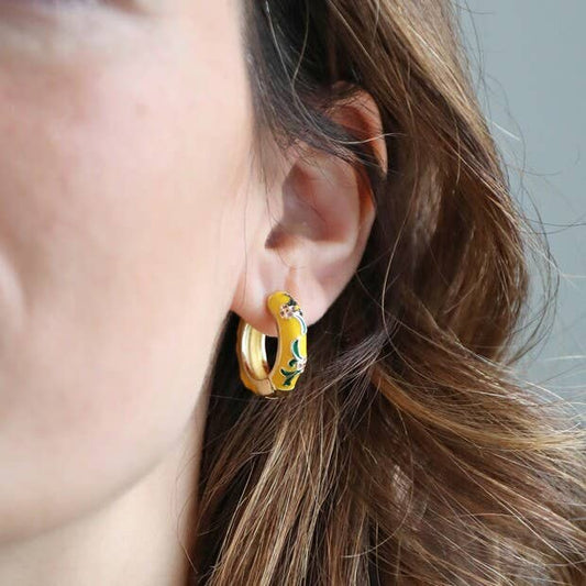 Moon Phase Enamel Huggie Hoop Earrings in Gold