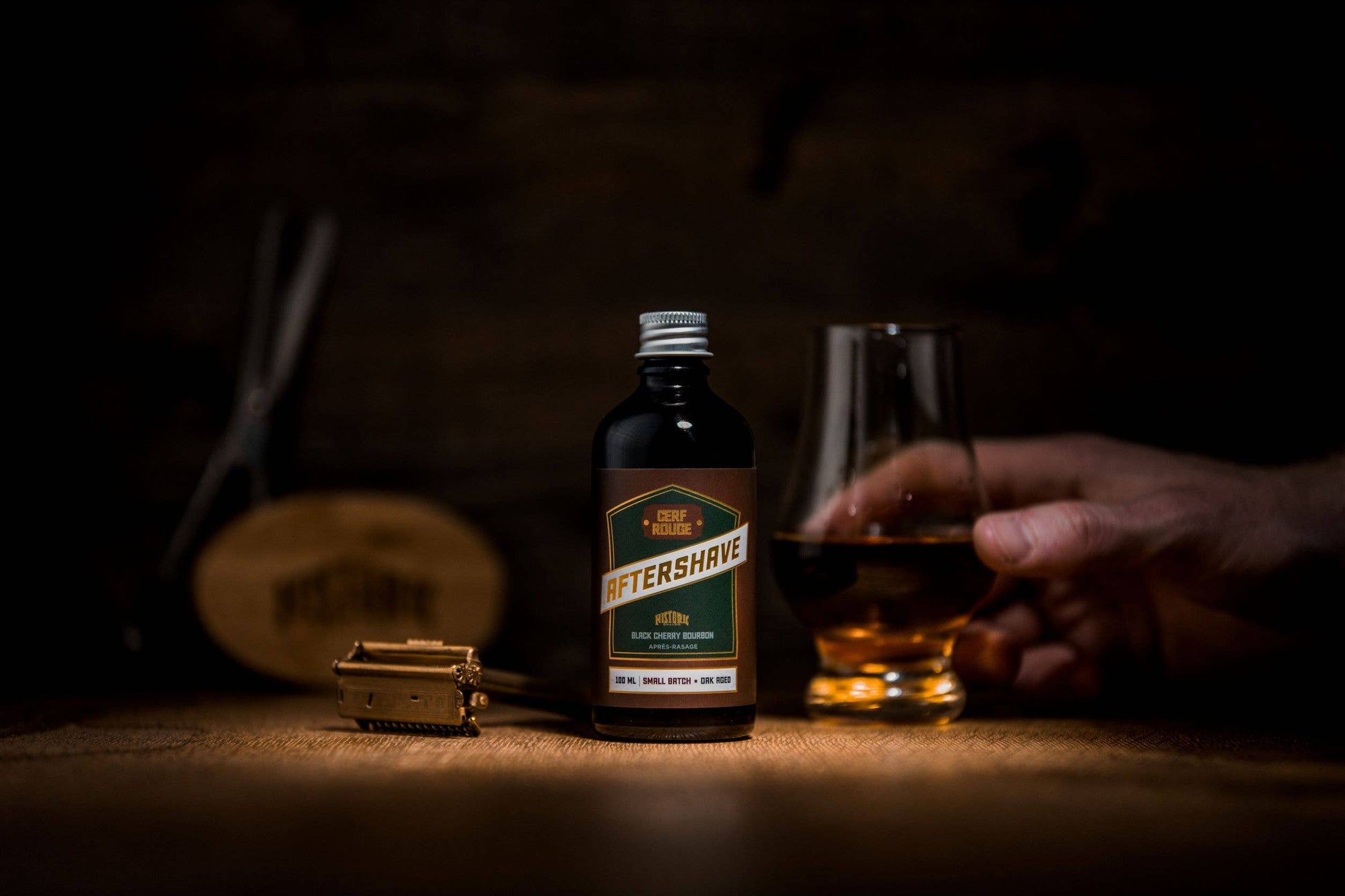 Black Cherry Bourbon, aged in charred European Oak Barrels! This unique aftershave is aged in French Limousin Quercus Robur & charred European oak barrels to enhance aromas, infuse natural detoxifying tannins & offer a honey brown bourbon colouring. Top aromas of black cherry, vanilla, light oak double over to a distinct dry down of smoke, spiced chocolate & leather. Our unique potassium alum formula that contains styptic and antiseptic properties helps to counter nicks and oily skin. Smell superb and enjoy the effective functionality of this traditional restorative aftershave.