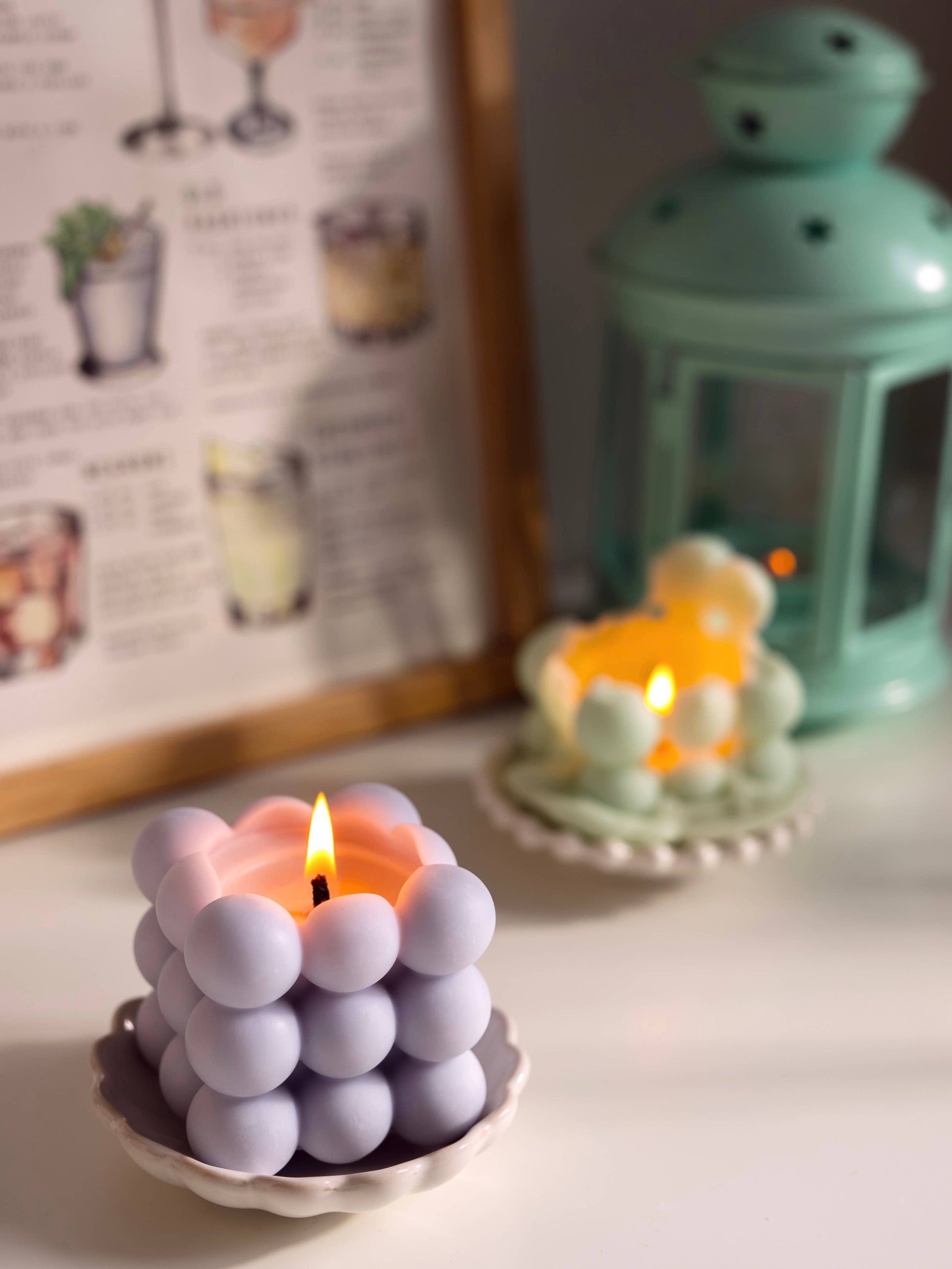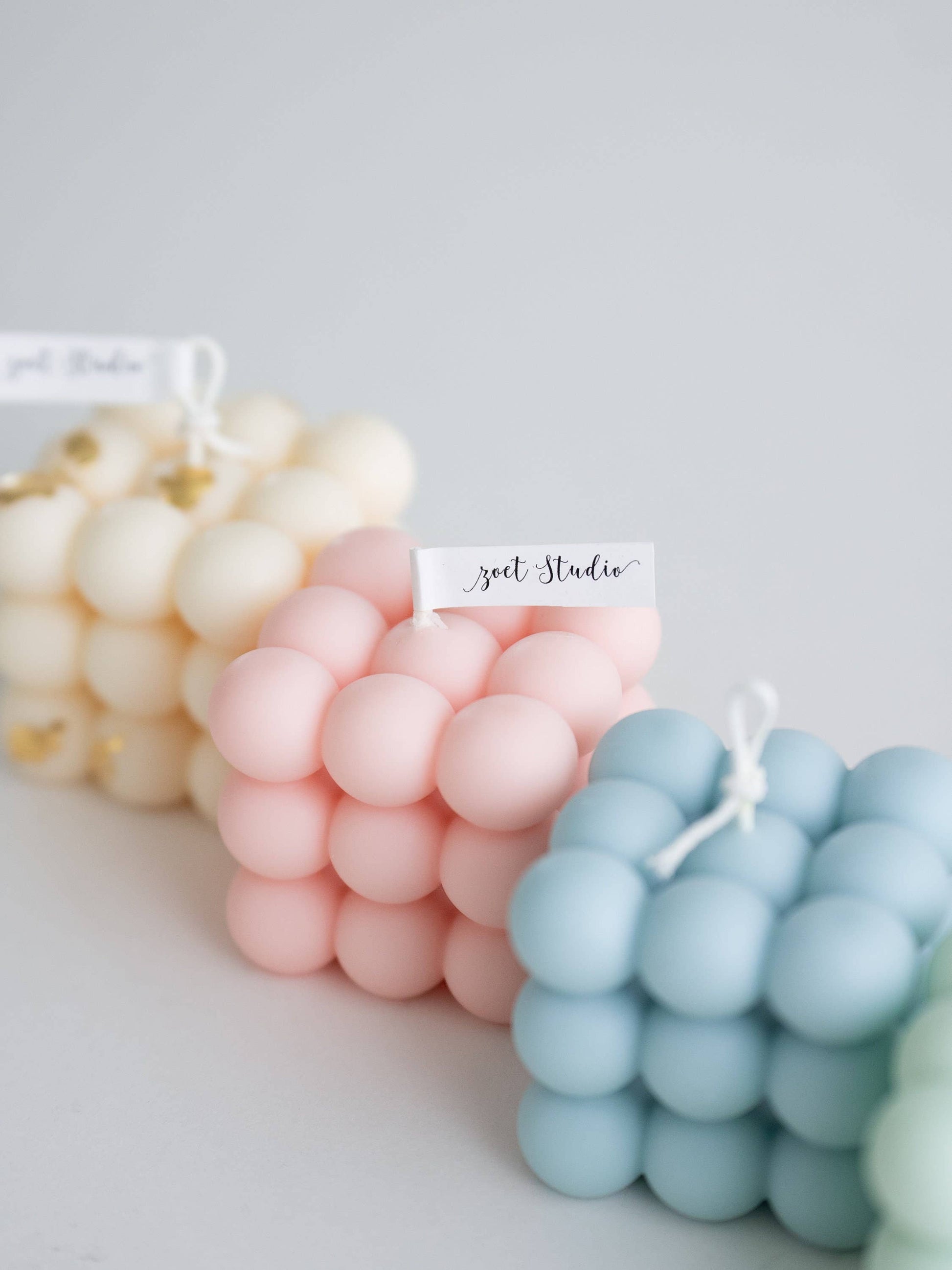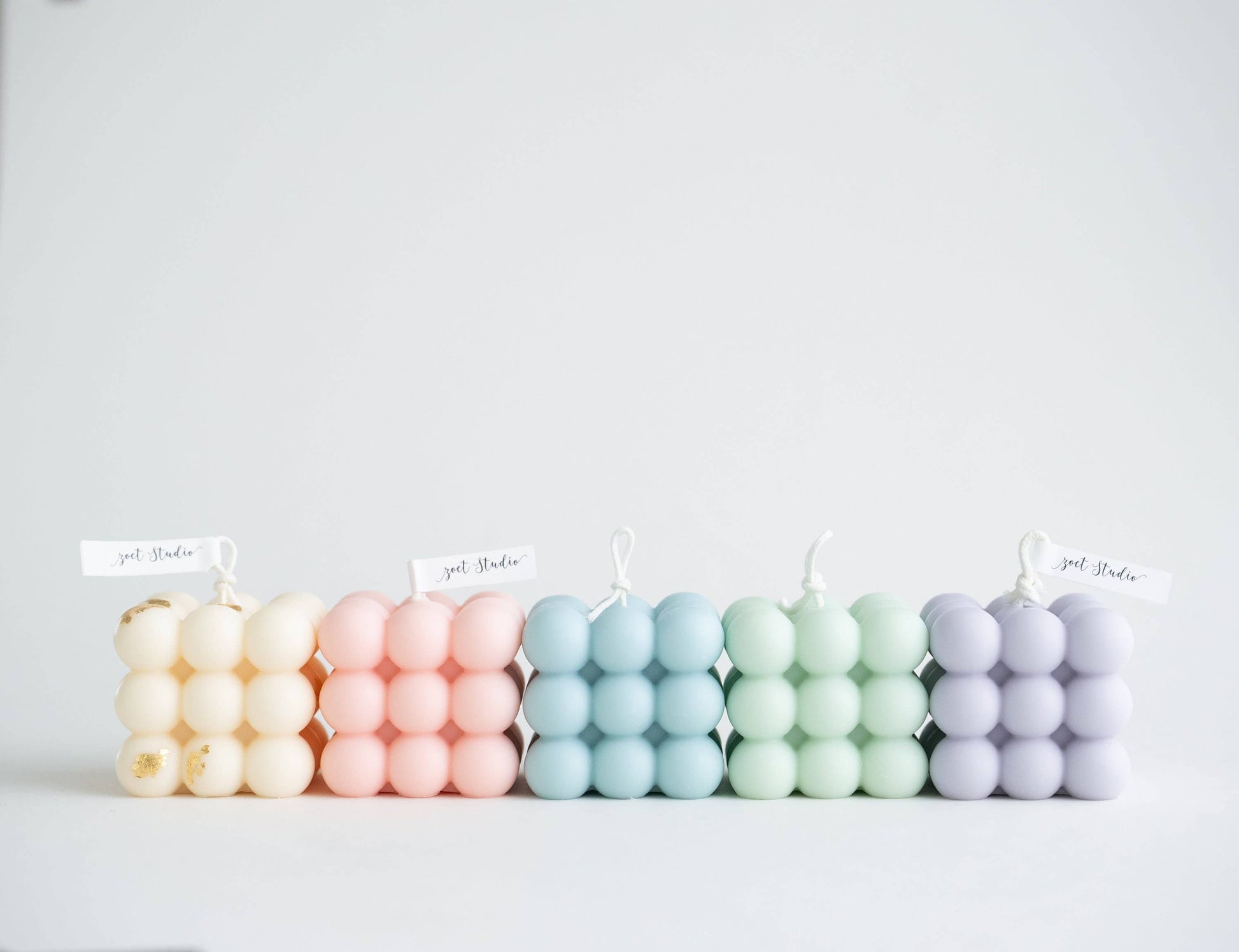 Classic cube/bubble candles made of natural soy wax and phthalate-free high quality fragrance oil.