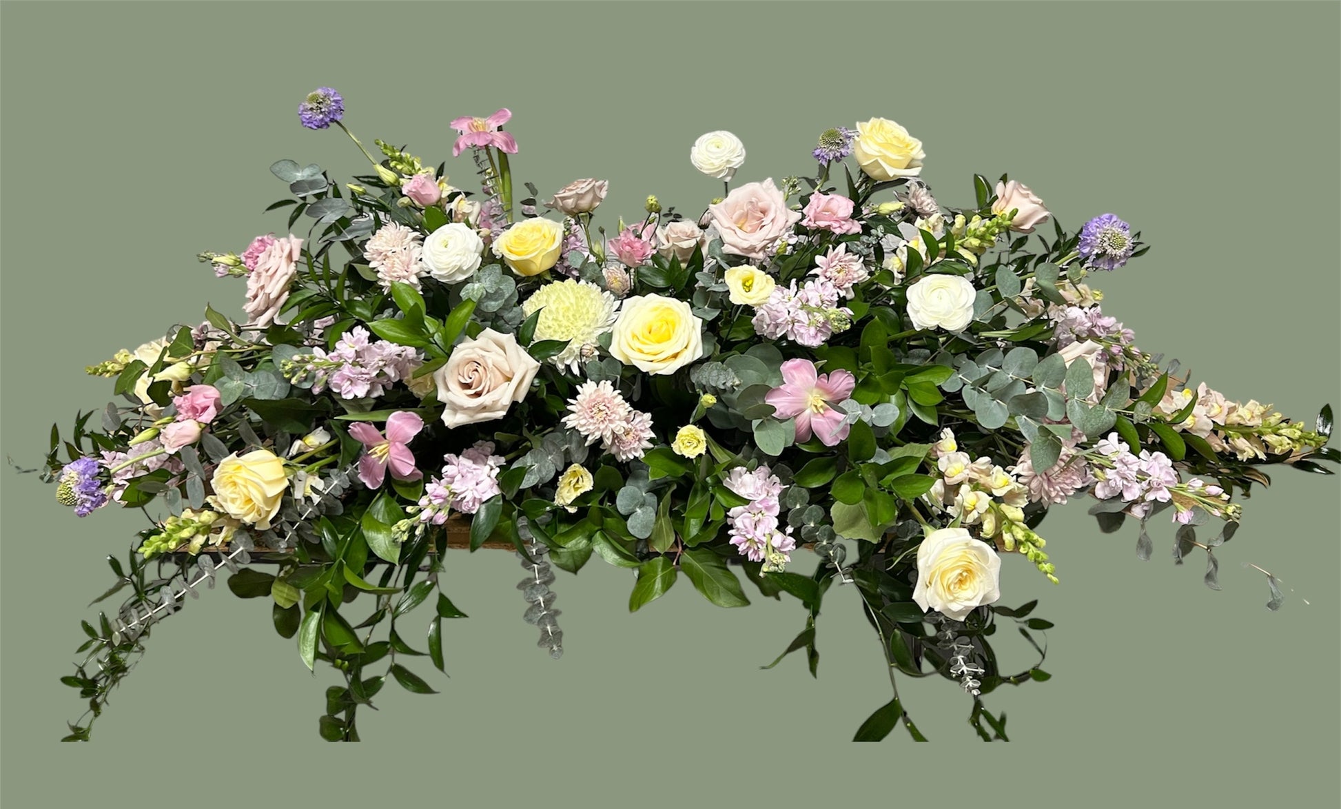 If opting for online checkout, please provide us with any custom details and preferences at checkout in the notes section. Kindly include: Color scheme, types of flowers, and size requirements. Let us know if the service will be open or closed casket as this will affect the design style.