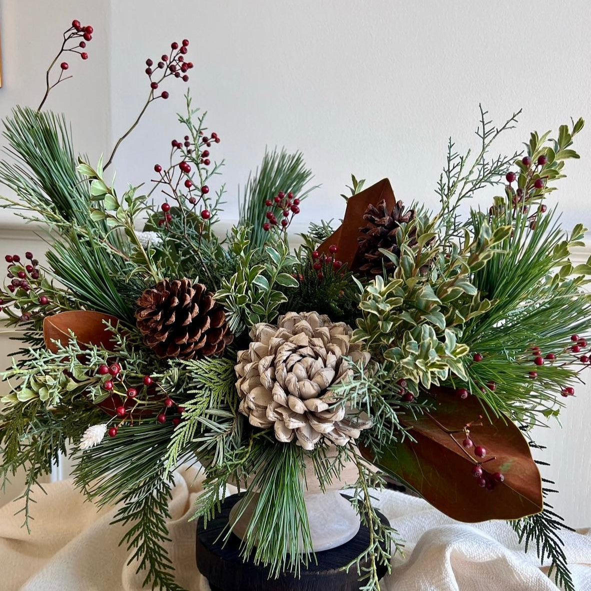 Celebrate the season by creating a fresh floral centrepiece that will bring warmth and charm to your holiday table. In this guided workshop, you will design a lush arrangement featuring festive blooms, evergreens, and seasonal accents—perfect for Christmas gatherings or as a beautiful gift.