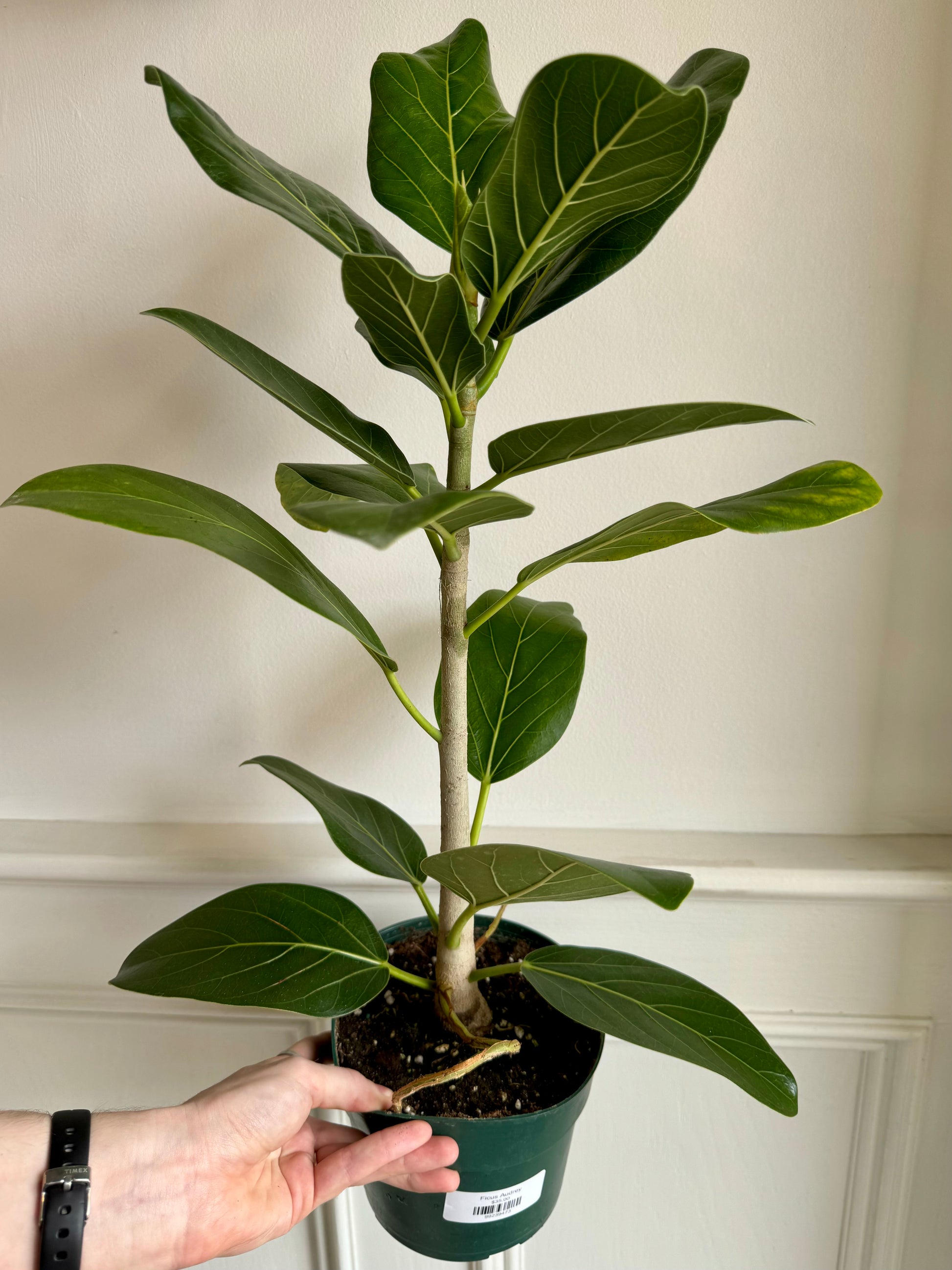 Appearance: Ficus Audrey is characterized by its large, oval-shaped leaves that can grow up to several inches long. The leaves have a glossy texture and are typically a vibrant green color. Unlike its close relative, the Ficus lyrata (Fiddle Leaf Fig), Ficus Audrey's leaves are smoother and less prone to splitting or browning at the edges.Growth Habit: Ficus Audrey has a relatively upright and compact growth habit compared to other ficus varieties. It can grow to be a medium to large-sized tree when planted outdoors in its native habitat, but when grown indoors as a houseplant, it typically maintains a more manageable size.