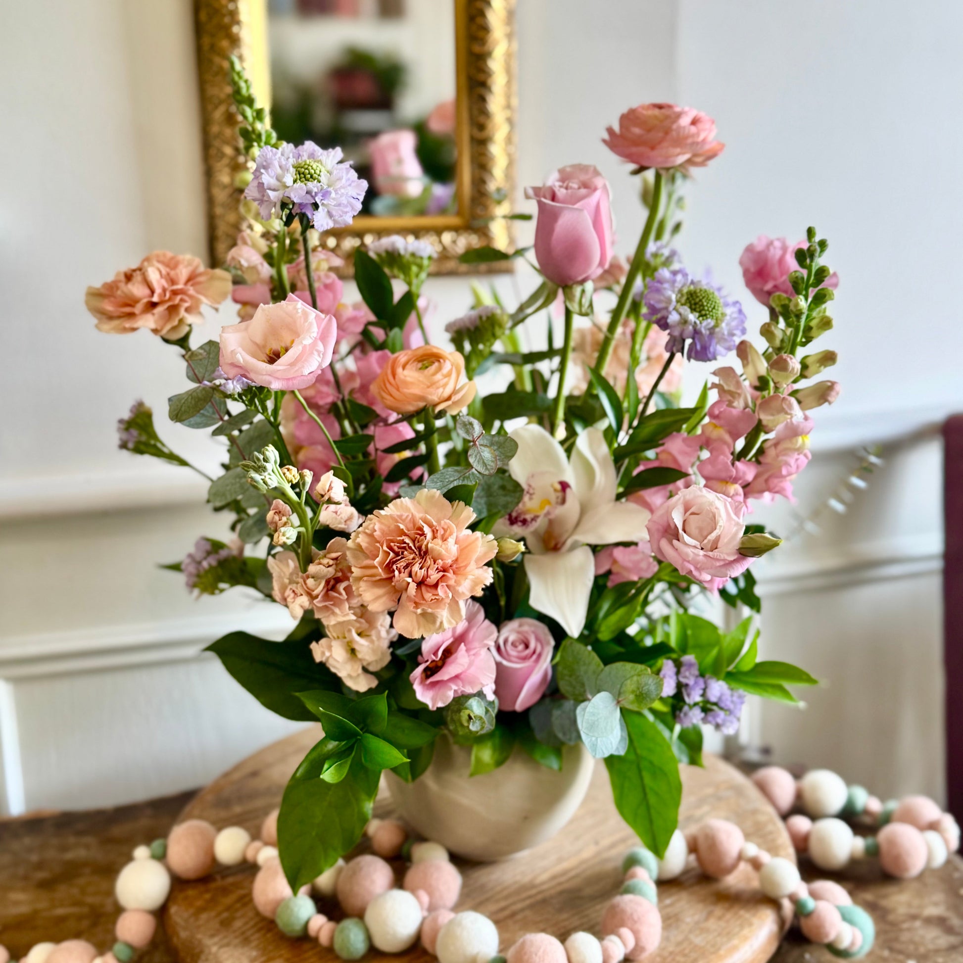 Join us for a hands-on floral workshop where we will create a medium-sized fresh flower arrangement—perfect for a coffee table or side table. During the session, you will learn basic floral design techniques and tips on how to style and care for your arrangement. Whether you are a beginner or just looking for a creative evening, this workshop is a lovely way to unwind and play with flowers.