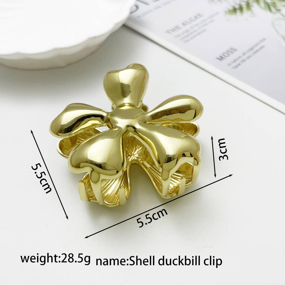 Elevate your hairstyle with this elegant gold floral hair claw. Crafted from durable metal, it offers a secure hold for updos, half-up styles, or everyday chic looks. Perfect for adding timeless sophistication to any occasion.