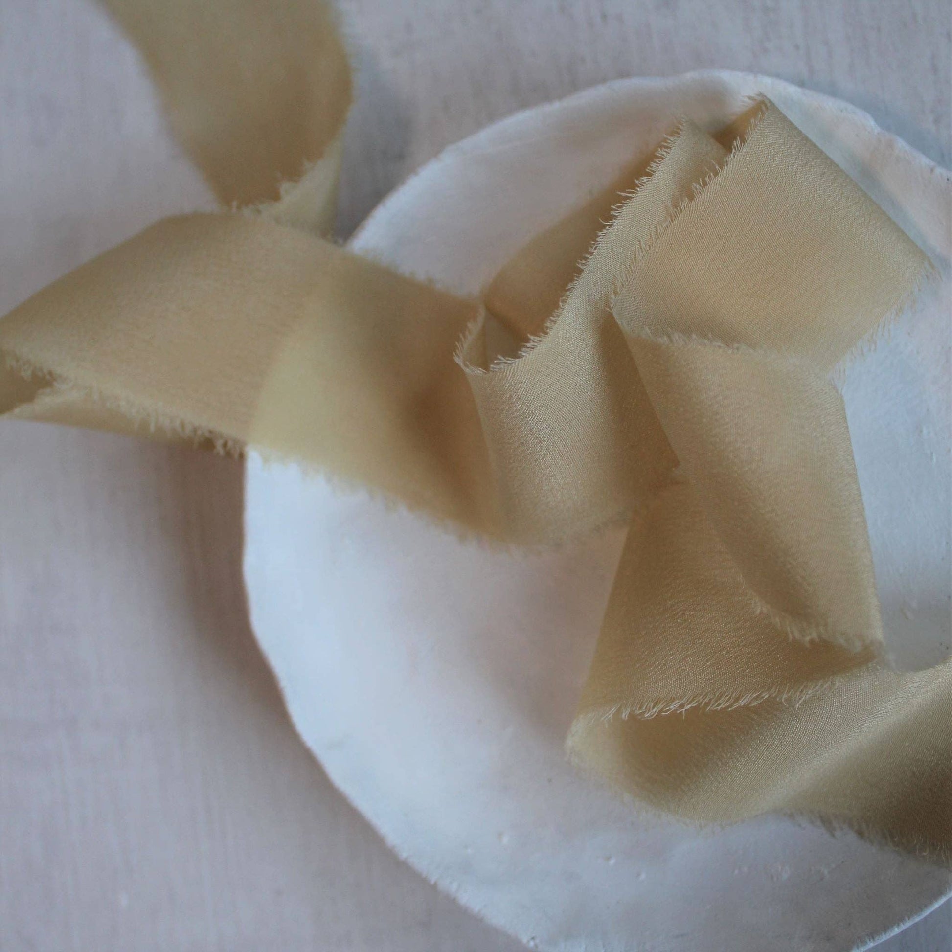 IVORY Silk Crepe de Chine Ribbon Hand Torn