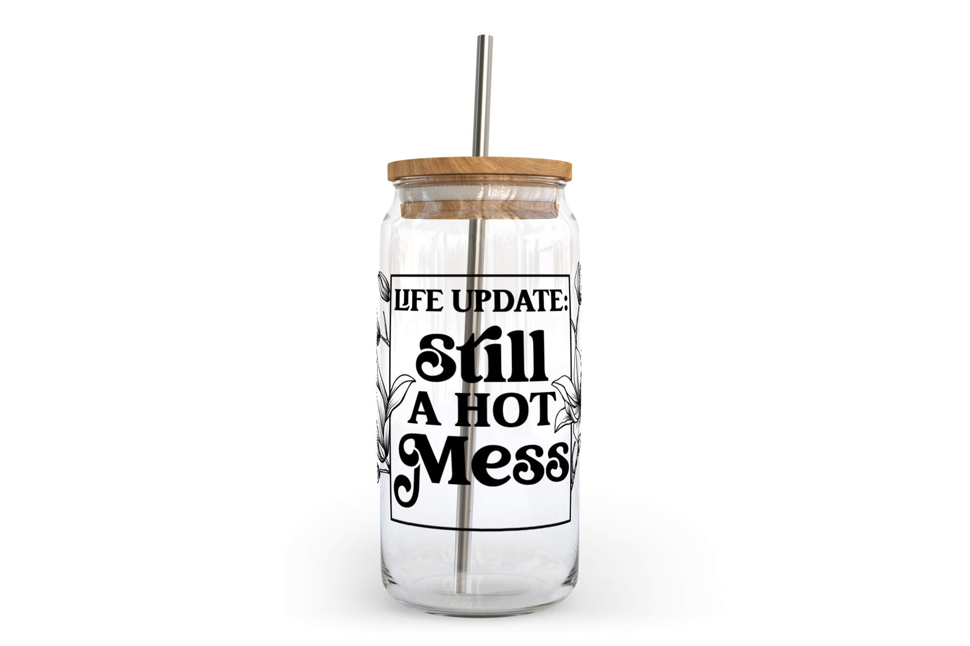 Life Update Glass Can w Bamboo Lid | Sarcasm Glass Can
