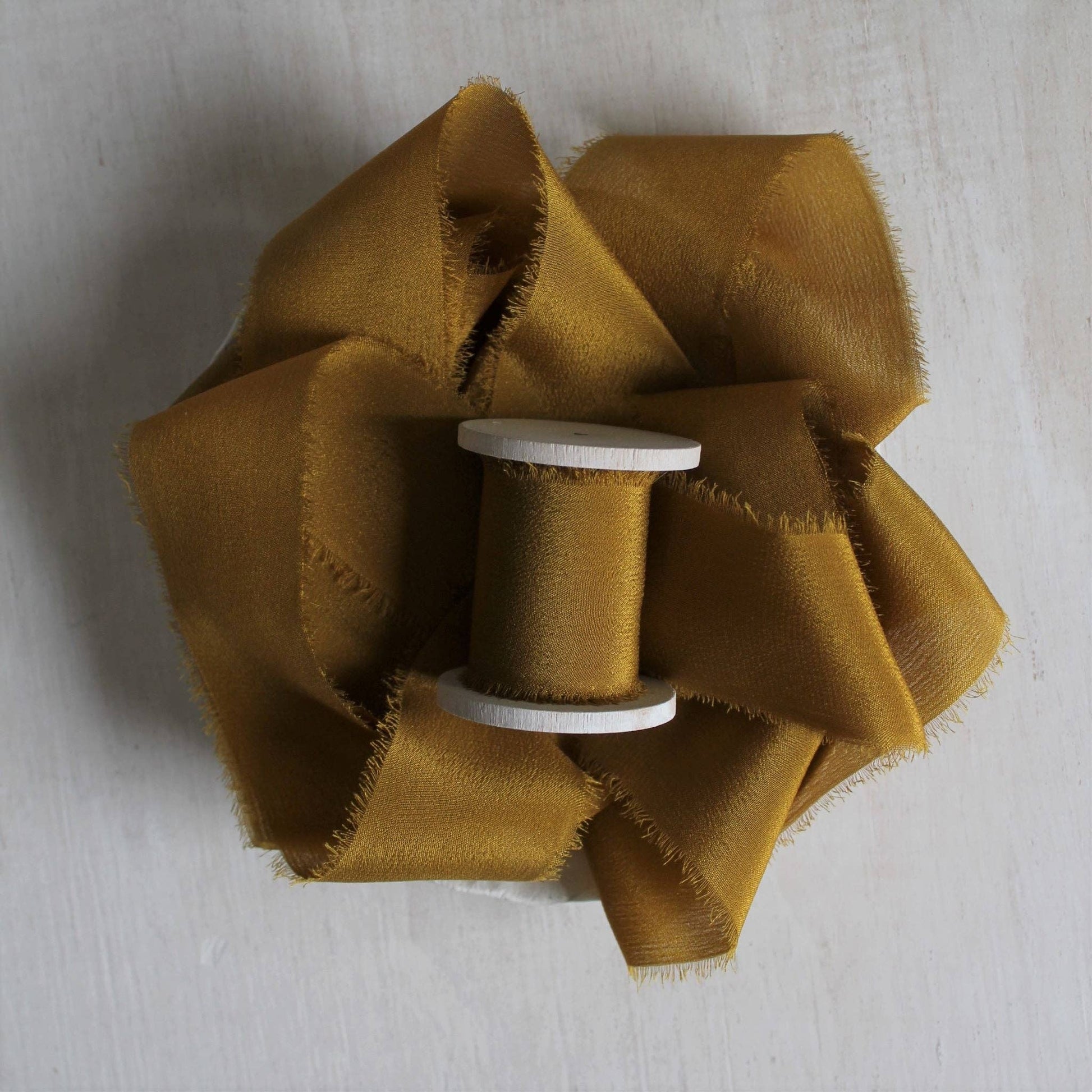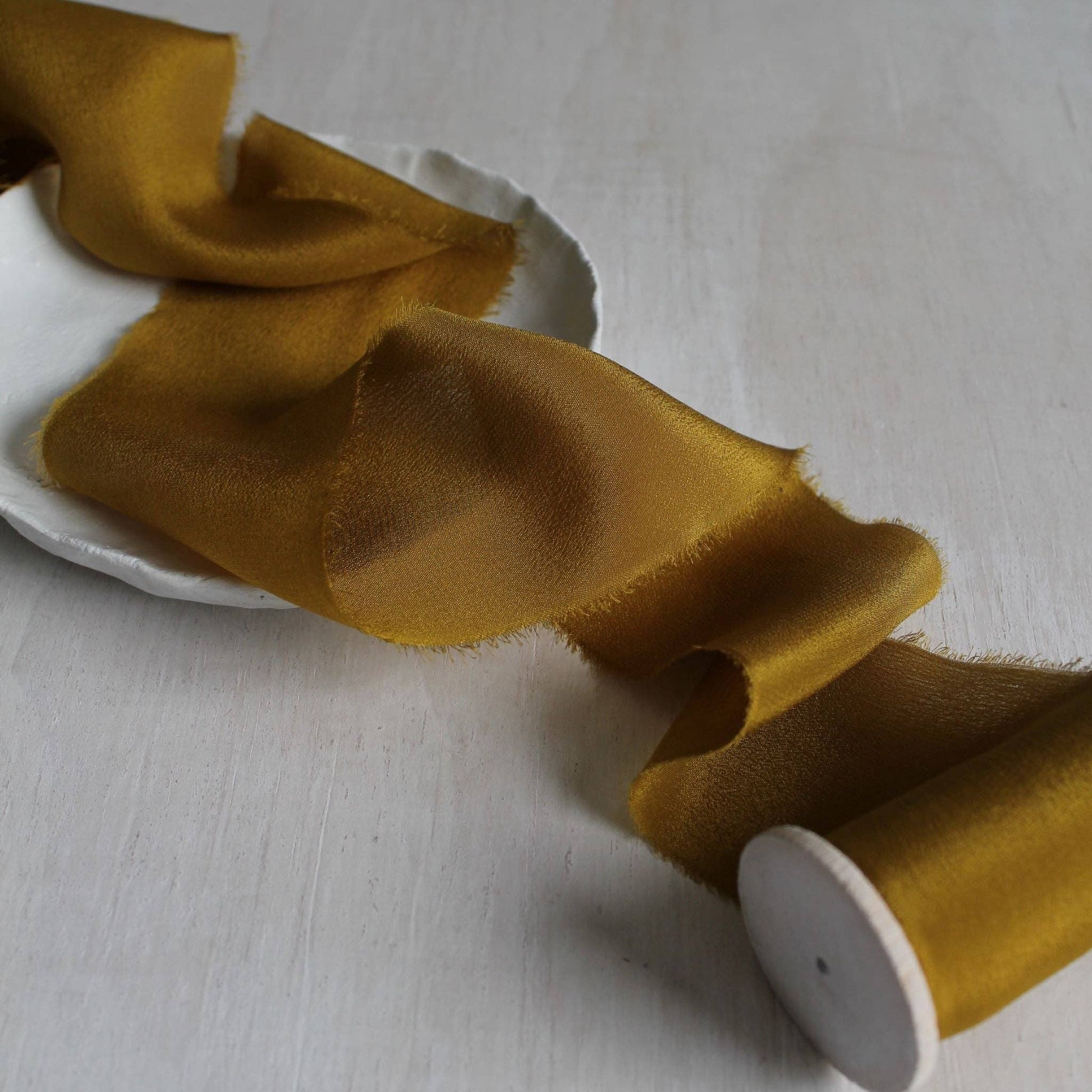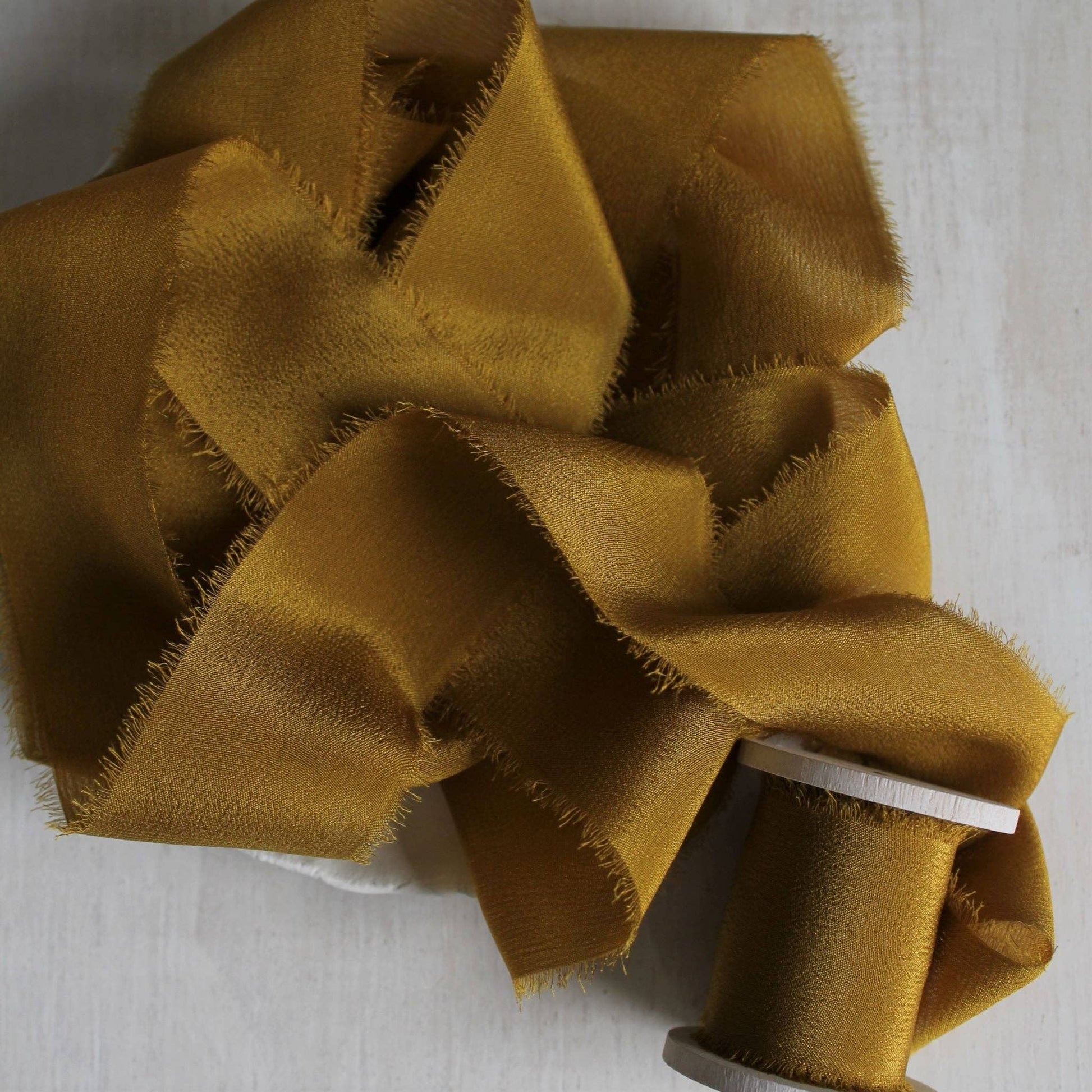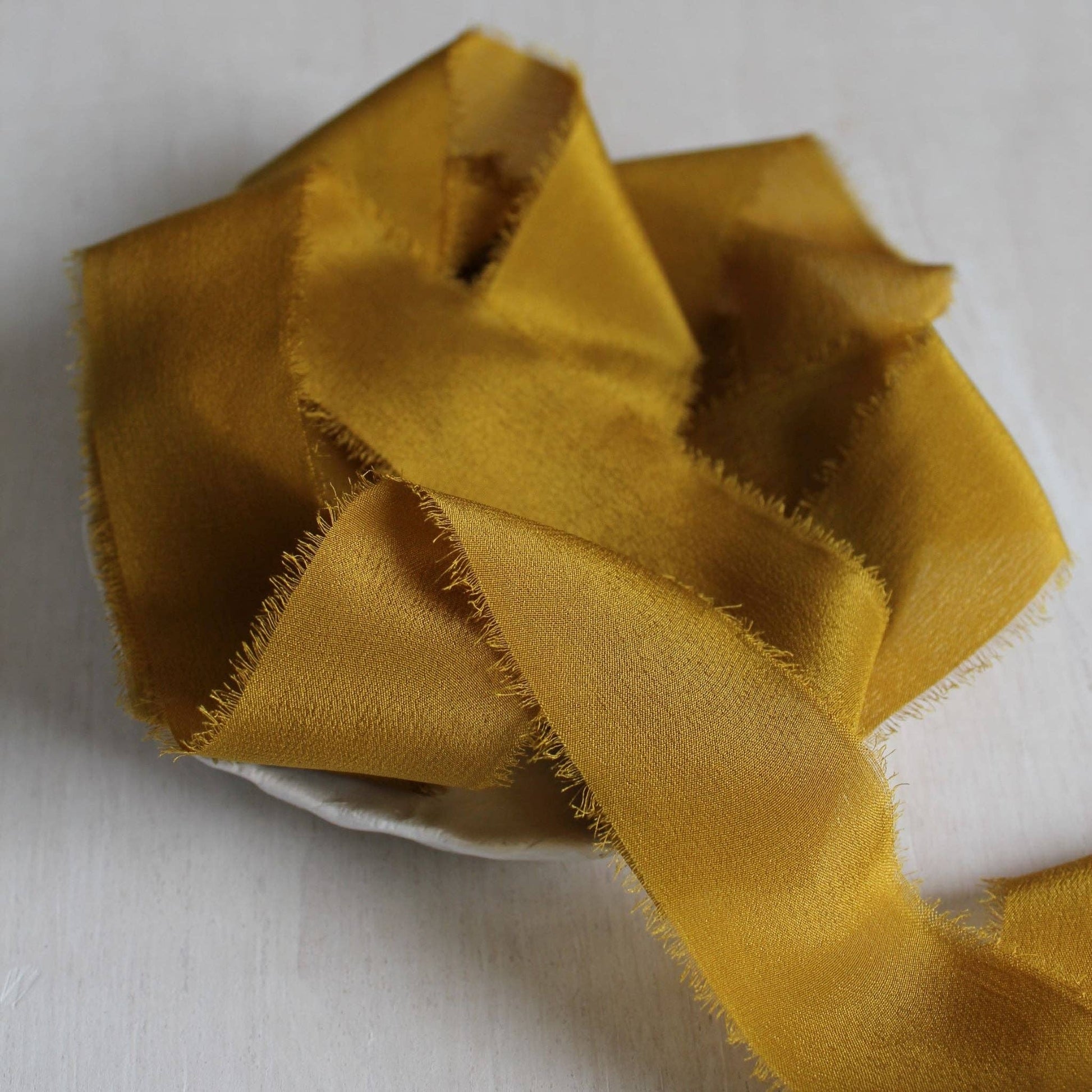 MARIGOLD Silk Ribbon, Crepe de Chine Hand Torn