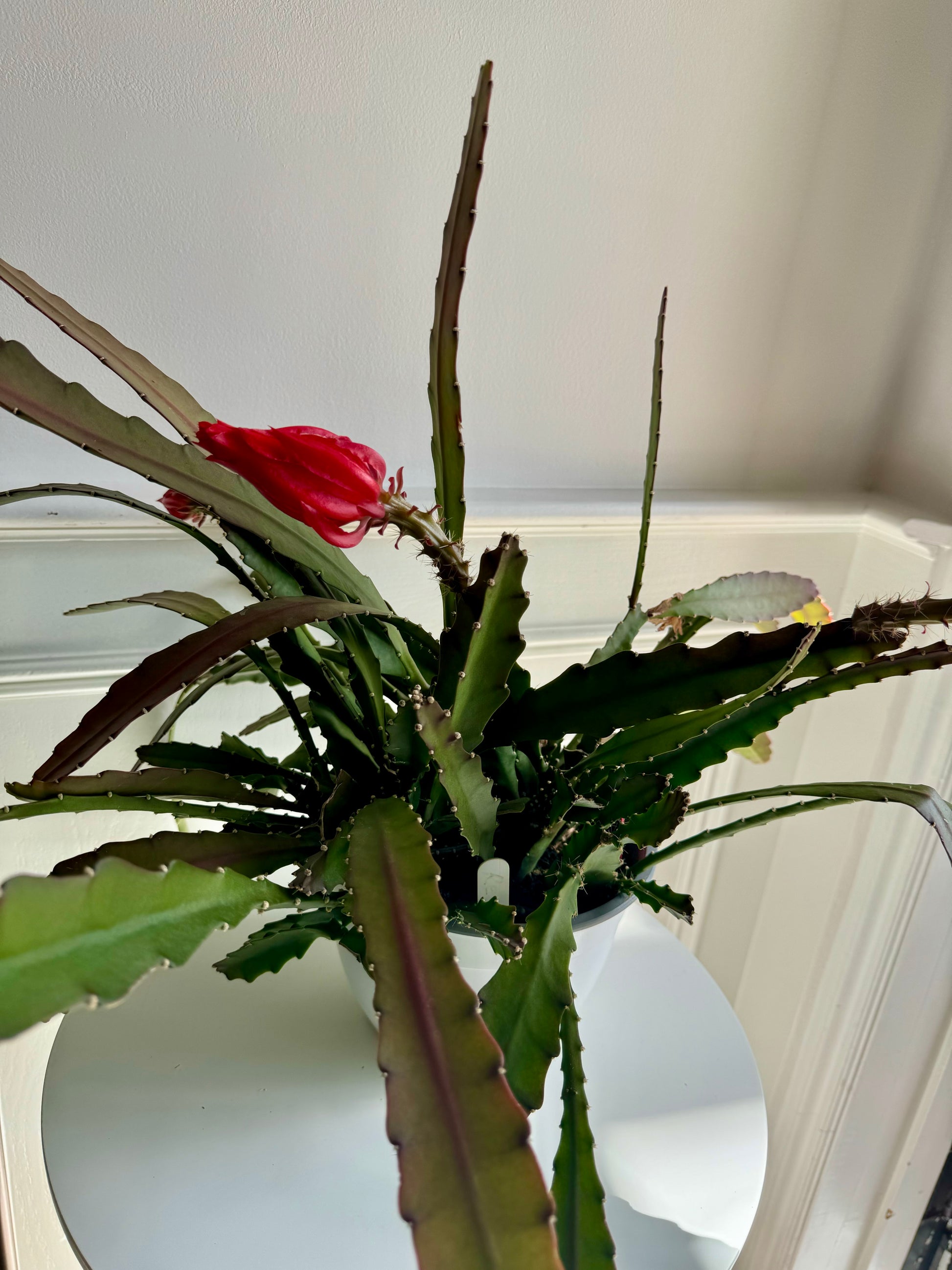 Appearance: Orchid cacti are typically epiphytic, meaning they grow on other plants or structures rather than in soil. They have flattened, leaf-like stems called phylloclades that can vary in shape and size depending on the species and cultivar. The stems may be smooth or have small spines along the edges.