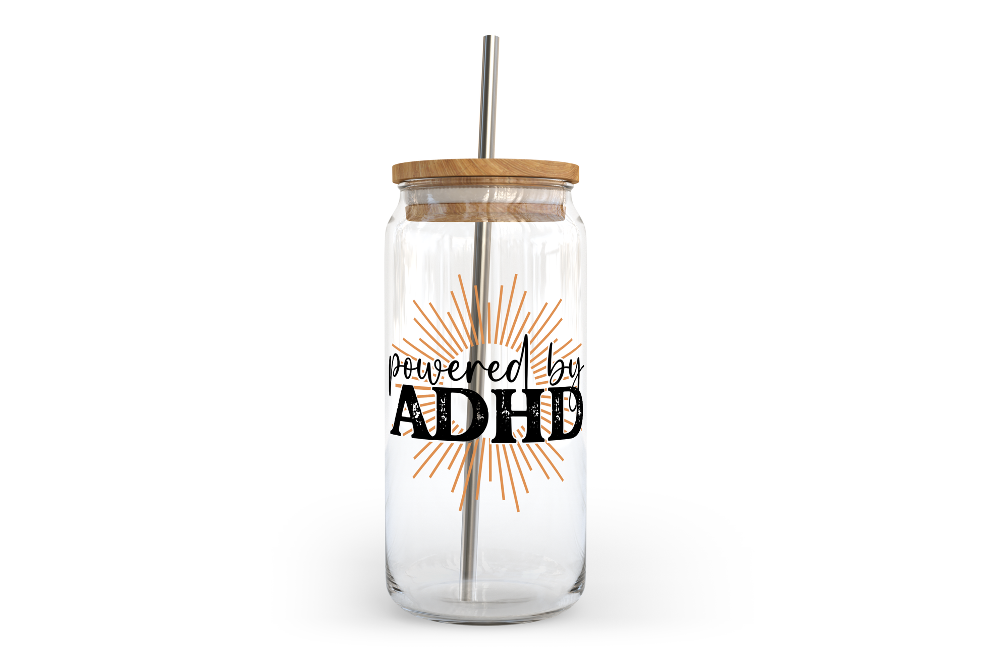 Powered by ADHD Glass Can w Bamboo Lid | Neurodiversity