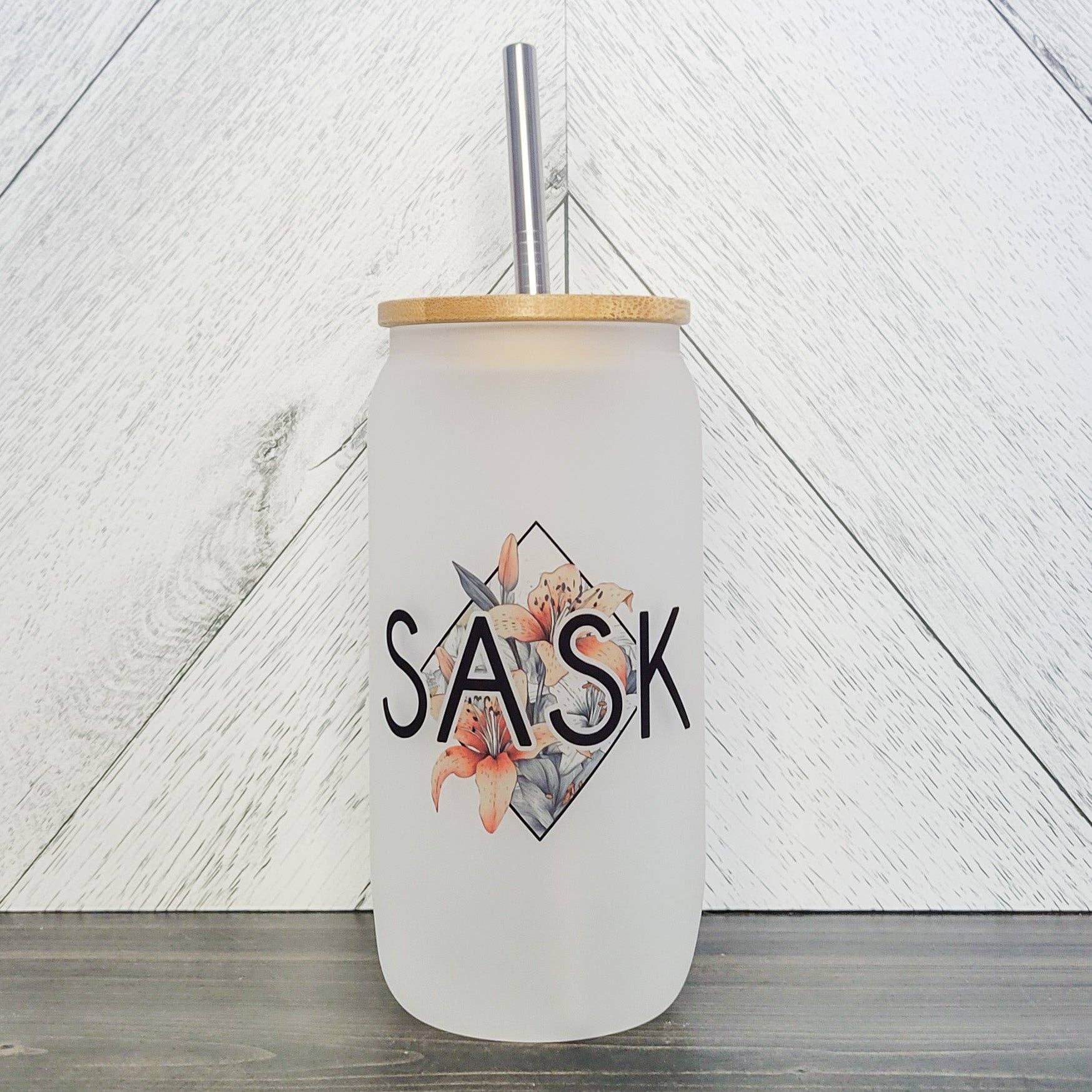 SASK Diamond Glass Can with Bamboo Lid | Saskatchewan