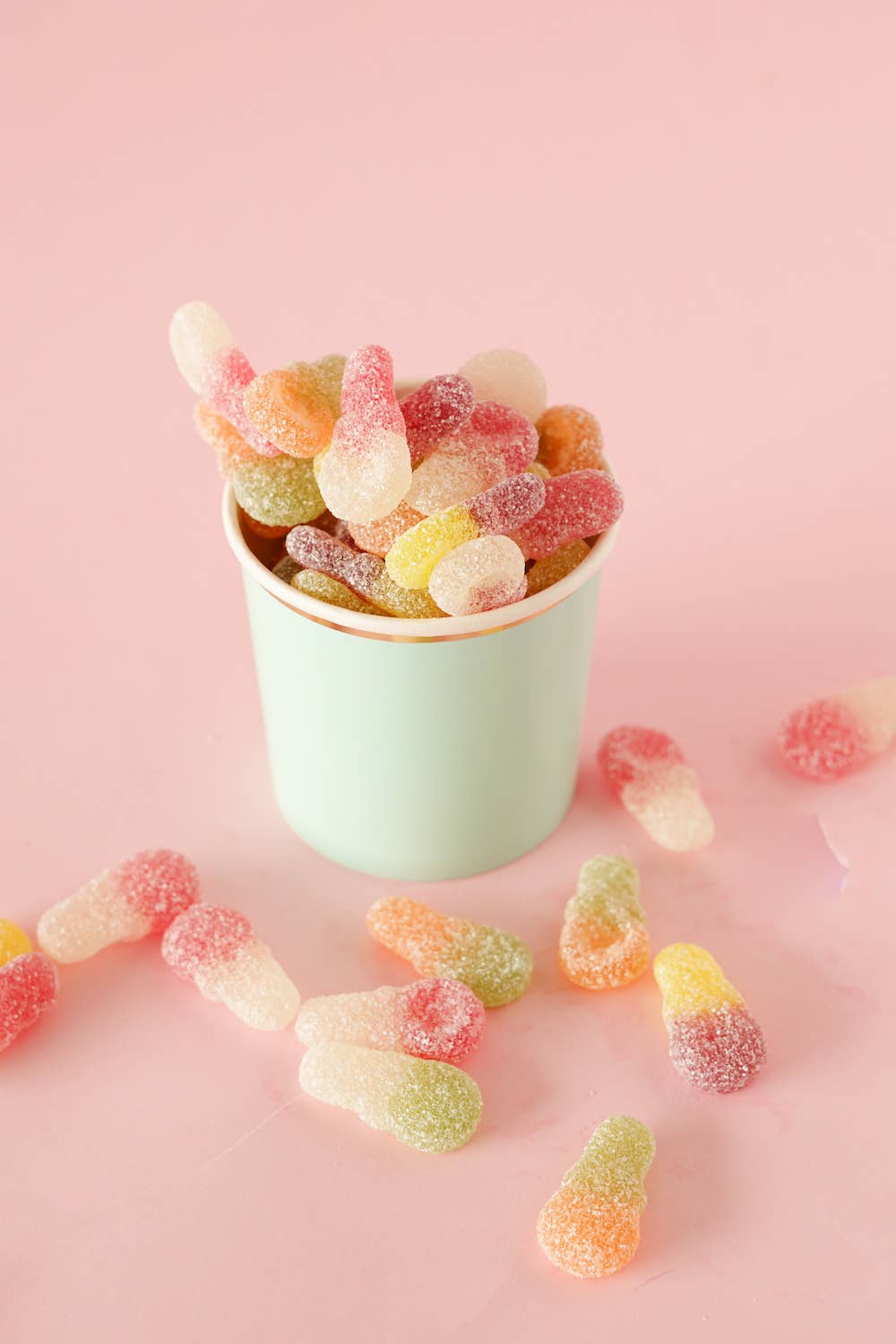 Our vegan fruity popsicles are made with concentrated fruit juices and natural coloring, and are vegan! For those who love fruits sorbets, we have created these little gummies made with real fruit juice that are a delicious substitute (or complement) to your frozen desserts. Summer and winter alike!
